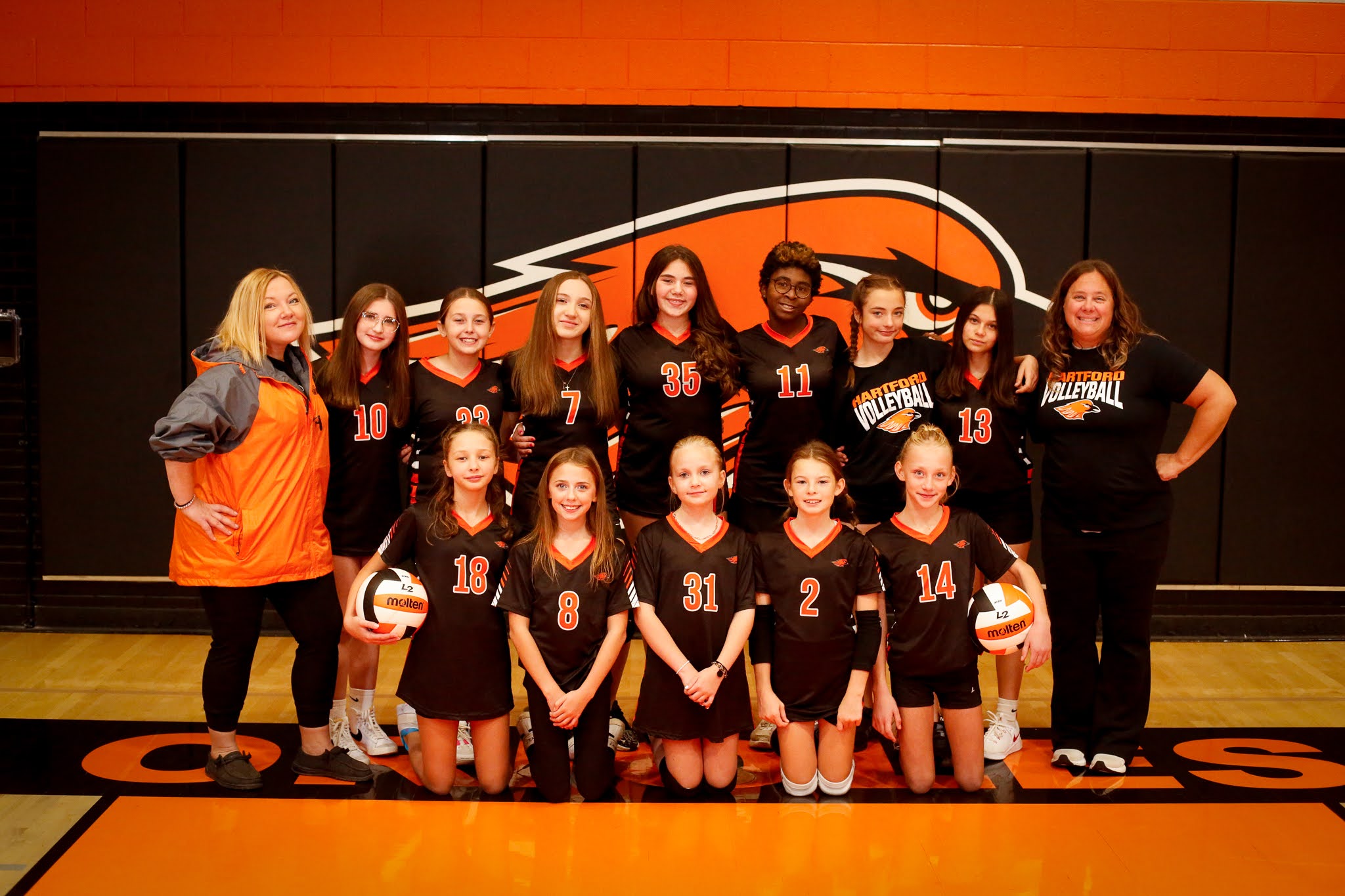 We started as a middle school program. Then we joined the Hartford Recreation Center and became a youth program. Now we have joined the Badger Region Volleyball Association and JVA and have become a year round program. We want to build positive and fun opportunities for our community volleyball lovers to learn and grow all year round. Whether at one of our camps, positional training, tune-ups or on one of our competitive teams, there are plenty of ways to participate with us. Please reach out if you have questions. Otherwise, we look forward to working with you sometime this year!